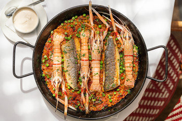 Seafood Paella: Μια παραδοσιακή παέλια που περιλαμβάνει μια πλούσια ποικιλία θαλασσινών και αρωματικών μπαχαρικών, προσφέροντας μια γευστική εξερεύνηση της ισπανικής κουζίνας.