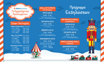 Το Εργαστήρι των Χριστουγέννων θα επισκεφθεί τα εμπορικά κέντρα Kings Avenue Mall (15/12 – 18/12), Mall of Cyprus (19/12 – 23/12) και Metropolis Mall (27/12 – 29/12), για να μεταδώσει το κλίμα της εποχής σε μικρούς και μεγάλους.