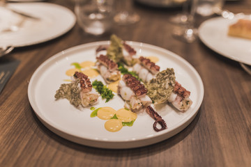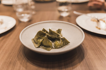 Ακολούθησε η απόλυτη γευστική μυσταγωγία με πιάτα γεμάτα γεύσεις και αρώματα, εντάσεις και απόλυτες ισορροπίες. Κυρίαρχα στοιχεία η καθαρότητα των αυθεντικών ιταλικών γεύσεων, η εποχικότητα και η ποιότητα των υλικών.