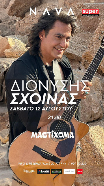 Το Σάββατο, 12 Αυγούστου έρχεται ένα ανεβαστικό Μαστιχοπάρτι με τον Διονύση Σχοινά.