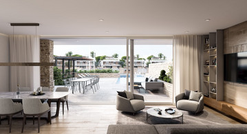 11 επαύλεις με απευθείας πρόσβαση στην κατάξανθη παραλία με τη λεπτόκοκκη άμμο, έχουν σχεδιαστεί μοναδικά για να προσφέρουν στους ενοίκους τους ένα πραγματικά ιδιωτικό και μοντέρνο περιβάλλον, με άνετους εσωτερικούς χώρους, καταπράσινους κήπους και καταπληκτική θέα στη Μεσόγειο. Είναι πλήρως ανεξάρτητες, 3, 4 ή 5 υπνοδωματίων, λίγα μόλις βήματα μακριά από την παραλία, σχεδιασμένες με προσεκτική ισορροπία εκλεπτυσμένης κομψότητας και σύγχρονης πολυτέλειας. Το καθιστικό τους έχει ενιαία διαρρύθμιση, εξοπλισμένο με της καλύτερης ποιότητας εξοπλισμό και φωτιστικά.