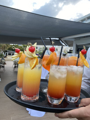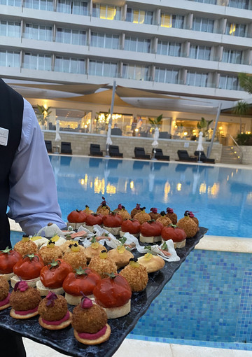 Η εκπληκτική εμπειρία διαμονής είχε και συνέχεια καθώς το απόγευμα ακολούθησαν δροσιστικά κοκτέιλ και γευστικά καναπεδάκια, δίπλα στην μεγάλη πισίνα του Royal Apollonia. Υπό τους μαγικούς ήχους του σαξοφώνου, απολαύσαμε το ποτό μας σε ένα ατμοσφαιρικό περιβάλλον με το απέραντο γαλάζιο της Μεσογείου να εκτείνεται μπροστά μας.