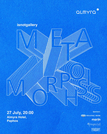 Η νέα ομαδική έκθεση της Isnotgallery Contemporary με τίτλο «Μεταμόρφωσις | Metamorphosis» αφουγκράζεται και συνομιλεί με τους χώρους του εμβληματικού ξενοδοχείου Almyra Hotel στην Πάφο. Η έκθεση στοχεύει στον επαναπροσδιορισμό της σχέσης της σύγχρονης τέχνης με ένα εμβληματικό αρχιτεκτόνημα όπως είναι το ξενοδοχείο Almyra. Οι όγκοι, οι σκιές, τα φωτεινά παράθυρα και άλλα δομικά στοιχεία συνομιλούν αρμονικά με μια σειρά νέων σχεδίων, γλυπτών, εικαστικών παρεμβάσεων και σύγχρονων δειγμάτων τέχνης, παιχνιδίζοντας το ένα με το άλλο.
