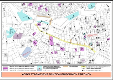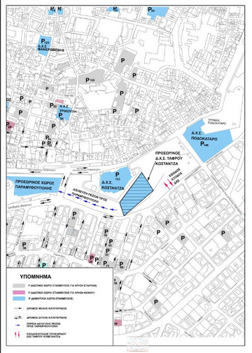 Επίσης ο χάρτης δείχνει τους διαθέσιμους ιδιωτικούς και δημοτικούς χώρους στάθμευσης στην περιοχή.