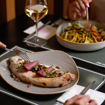 Μεταξύ των αλμυρών προτάσεων του μενού μπορεί κανείς να απολαύσει και το σάντουιτς με μοσχάρι σε ψωμί πίνσα, όπως και το πεϊνιρλί με τυρί γκοργκονζόλα, μπρεζάολα και λευκή σως με πράσο.