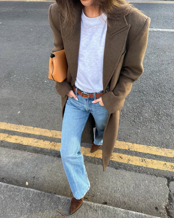 1. Γκρι μπλουζάκι, τζιν και παλτό
