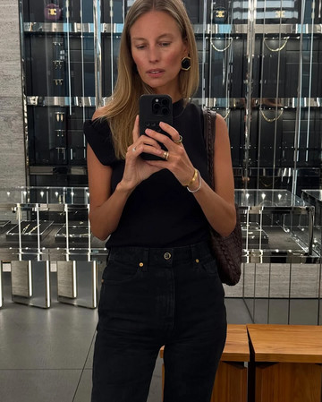 3. Αμάνικο πλεκτό μπλουζάκι με μαύρο τζιν