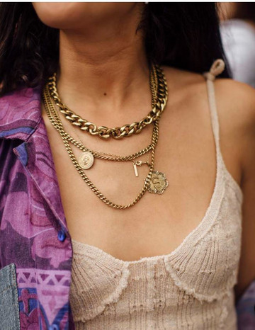 To layering με τις αλυσίδες μπορεί να σου χαρίσει πραγματικά ένα εντυπωσιακό look. Επίλεξε ένα μπλουζάκι με V ντεκολτέ και ξεκίνα να κάνεις layering φορώντας το πιο μακρύ κολιέ και έπειτα τα πιο κοντά.