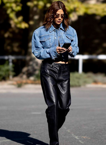 Το denim jacket μπορεί να λειτουργήσει και ως top αν το φορέσεις με το δερμάτινο παντελόνι σου. Ένα fashion combo που δημιουργεί μια casual, vintage αίσθηση με μια ροκ πινελιά.