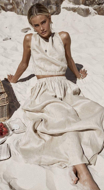 Λινό σέτ με μαξι φούστα και τοπ με λάστιχο