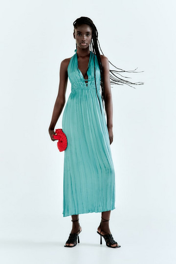 Πρόκειται για δημιουργία από τη νέα συλλογή των καταστημάτων Zara και τιμή του αγγίζει τα 39.95 ευρώ. Σε απαλή γαλάζια απόχρωση και σε halter-neck design είναι σίγουρο πως θα σου χαρίσει μια κομψή εμφάνιση.