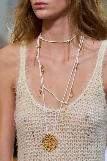 Αναπόσπαστο αξεσουάρ των Roaring 20s, το μακρύ κολιέ επιστρέφει στη Chanel, ως φόρος τιμής στην Γκαμπριέλ Σανέλ, όπου εμφανίζεται σε εκδοχή micro-τσάντας, όπως και σε Coach ή Emporio Armani, ενώ στους Tory Burch και Gabriela Hearst έρχεται με πέτρες και αλυσίδες από χάντρες.