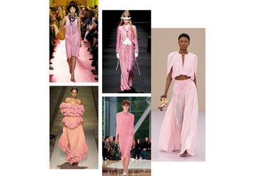 Από το εκρηκτικό bubblegum μέχρι το φίνο, διάφανο ροζ, η παλέτα της σεζόν αποκτά νέα ένταση. Ο οίκος Calvin Klein επένδυσε στη μονοχρωμία με έντονο ροζ σε σατινέ υφή, ενώ η Prada πρότεινε παστέλ τόνους σε παλτό από μαλακό δέρμα, αναδεικνύοντας την ευελιξία του χρώματος.