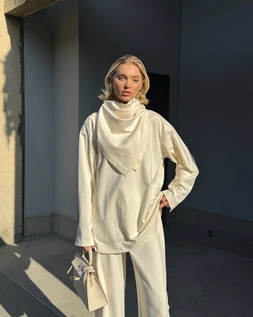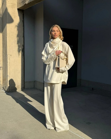 Φορεμένος με tailored παντελόνια, μακριές φούστες ή ακόμα και πάνω από slip dresses, ο ψηλός γιακάς αποκτά έναν νέο, δυναμικό ρόλο στη χειμερινή γκαρνταρόμπα. Η Χοσκ τον συνδύασε με ουδέτερες αποχρώσεις και chunky αξεσουάρ, διατηρώντας την αίσθηση της σύγχρονης κομψότητας που την χαρακτηρίζει.