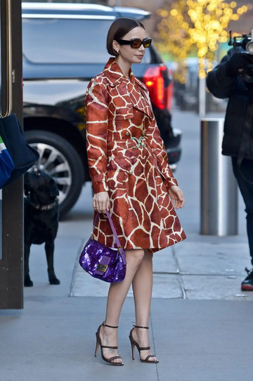 Η Lily Collins επέλεξε trench coat με cow-print μοτίβο και το συνδύασε με μια sparkling τσάντα Fendi. Μία εμφάνιση τολμηρή και πολύ fashionable.