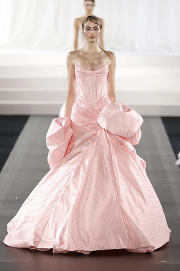 Οι όγκοι αψηφούν τη βαρύτητα. Φορέματα που μοιάζουν να αιωρούνται. Σιλουέτες που άλλοτε αγκαλιάζουν το σώμα με απόλυτη ακρίβεια και άλλοτε το αφήνουν να αναπνέει μέσα σε αέρινα στρώματα τούλι.
