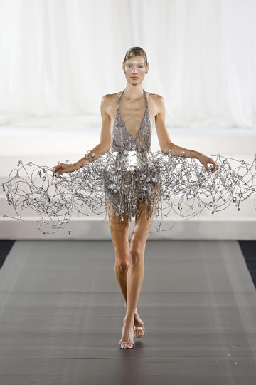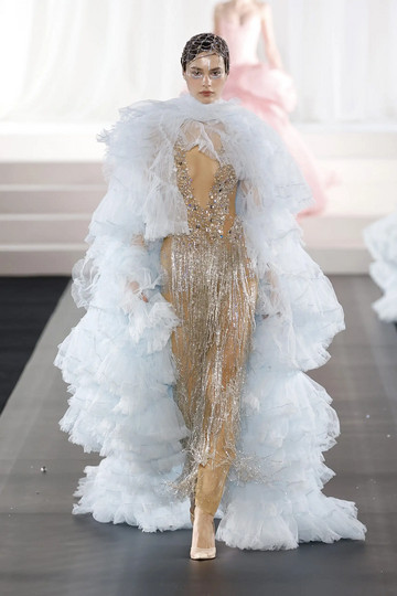 Η κινηματογραφική αίγλη συναντά το couture savoir-faire. Κάθε ρούχο είναι αποτέλεσμα ακραίας δεξιοτεχνίας. Χέρια που κεντούν, που πλέκουν, που διαμορφώνουν όγκους, που δίνουν ζωή σε υλικά. Φτερά, κρόσσια, φίνα δαντέλα, μεταξωτό σατέν, ταφτάς, οργάντζα, τούλι δίνουν το παρών στη συλλογή.