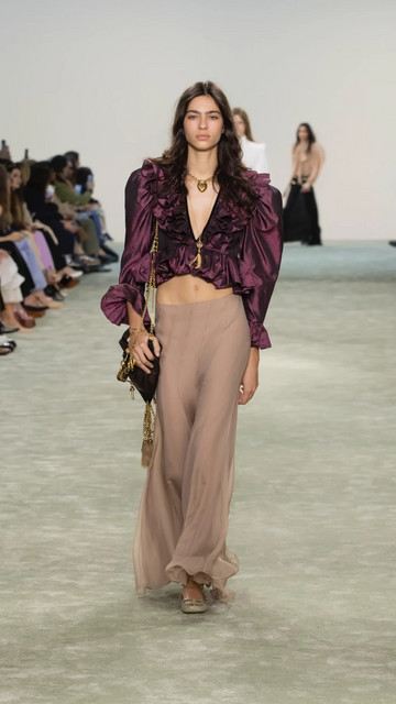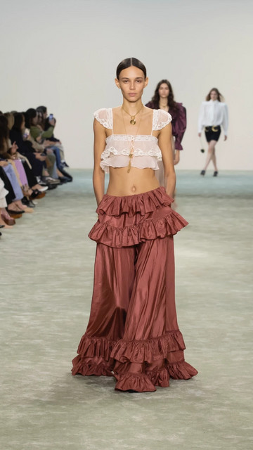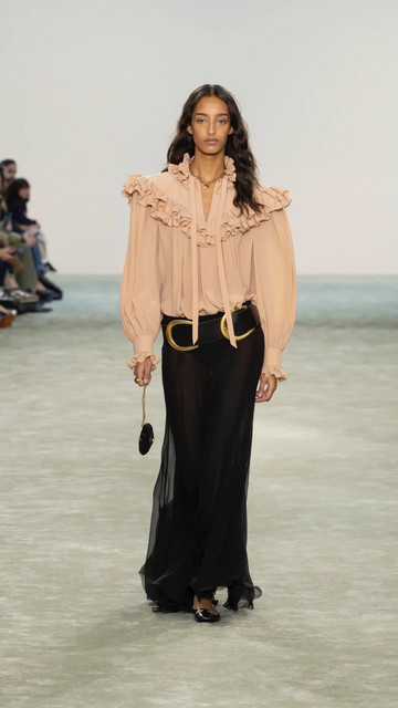 Η Kamali ξέρει να αφηγείται ιστορίες μέσα από τα ρούχα. Και τι ιστορία είπε αυτή τη φορά; Μια επιστροφή στη χρυσή εποχή της Chloé, όταν οι Stella McCartney και Phoebe Philo έδωσαν νέα πνοή στο ανέμελο, αλλά σοφιστικέ στυλ. Αέρινες μπλούζες με βολάν, σακάκια με βικτωριανές αναφορές και μάξι παλτό σε γήινες αποχρώσεις έφτιαξαν το ιδανικό σκηνικό για μια γυναίκα που είναι ελεύθερη, εκλεπτυσμένη και γεμάτη αυτοπεποίθηση.