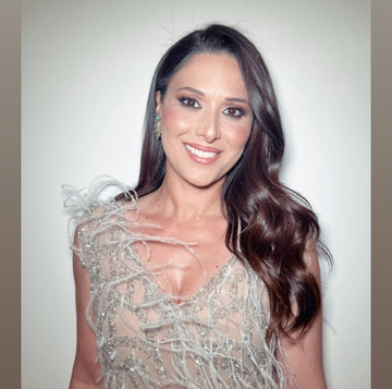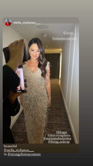 Η Στέλλα Στυλιάνου, από την άλλη προτίμησε ένα μάξι εξίσου εντυπωσιακό φόρεμα της ίδιας σχεδιάστριας, με sequin και feather λεπτομέρειες.