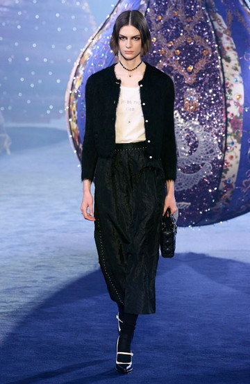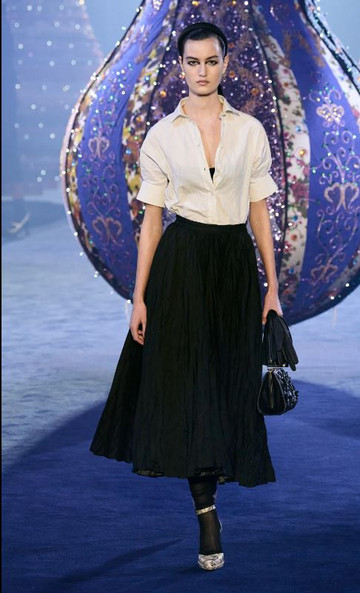 Ουσιαστικά, η Maria Grazia Chiuri, “ανακατασκεύασε” την ιστορική κληρονομιά του Christian Dior, με σύγχρονα “bar jackets” και μέσα από μια ανανεωμένη σιλουέτα-κλεψύδρα που επιστρέφει μέσα από μίντι φούστες με όγκο σε Α γραμμή, συνδυασμένες με λευκό πουκάμισο και Mary-Janes.
