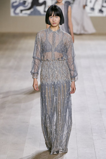 Στο ντεφιλέ που πραγματοποιήθηκε χτες, στο Musée Rodin στο Παρίσι σε ένα σκηνικό γεμάτο artworks κεντημένα στο χέρι, κυριάρχησε ξεκάθαρα η μίνιμαλ αισθητική. Μέσα από ίσιες καθαρές γραμμές, πολύ θηλυκές σιλουέτες και με μια χρωματική παλέτα που κινείτο σε ήπιους τόνους και κυρίως σε αποχρώσεις του λευκού, του μαύρου και του γκρι αποθεώθηκε η κοψμότητα της απλότητας.