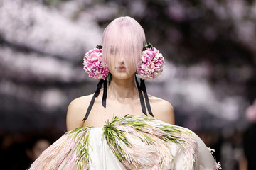Λουλούδια σε πλήρη άνθιση, ροζ μαλλιά που έπεφταν σαν πέπλο και λεπτομέρειες που μιλούσαν πιο δυνατά από οποιαδήποτε υπερβολή. Ο Jonathan Anderson άφησε συνειδητά τις λεπτομέρειες να αφηγηθούν την ιστορία.