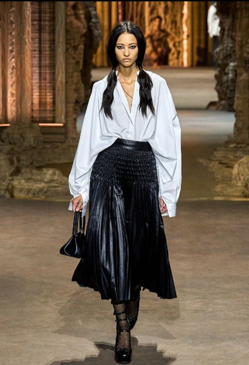 Ένα από τα looks που είδαμε και μπορούμε να αντιγράψουμε ήδη από αυτή τη σεζόν, είναι ο συνδυασμός του oversized λευκού πουκάμισου με μια πλισέ δερμάτινη φούστα.