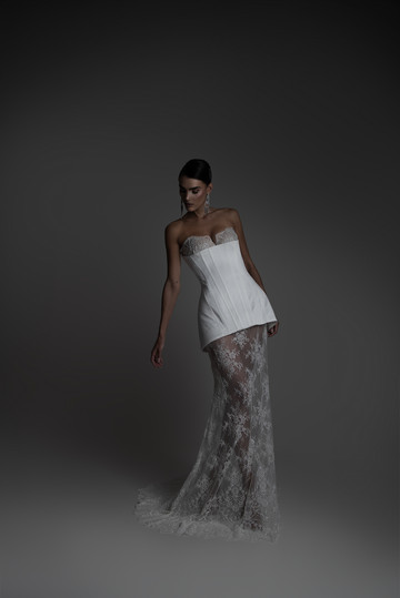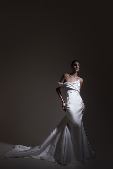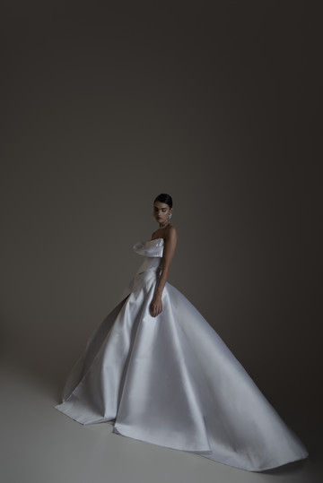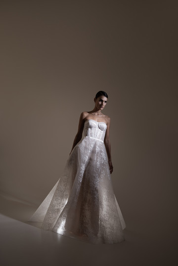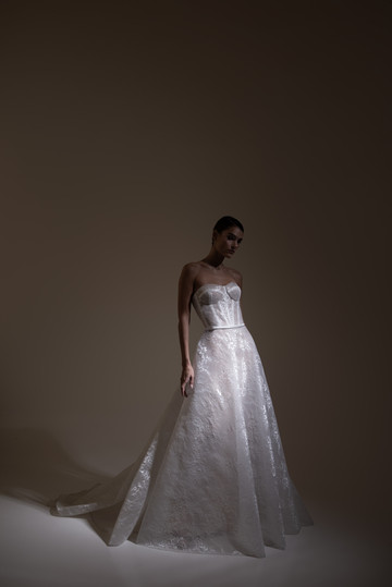 Τα στράπλες νυφικά κατέχουν κυρίαρχο ρόλο στη νέα Bridal Collection 2025 της Έλενας Στρογγυλιώτου και παρουσιάζονται σε πολλές διαφορετικές εκδοχές και υφάσματα. Αποσπώμενα μανίκια με αραχνούφαντα υφάσματα, μεταμορφώνουν τις στράπλες δημιουργίες δίνοντάς τους μια μοντέρνα πινελιά.
