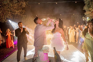 Αν και η ίδια όπως είπε ήθελε να μείνει με το νυφικό που επέλεξε, επείδη δεν ήταν αρκετά εύκολο ρούχο για το πάρτι, εμπιστεύθηκε μια νεαρή Κύπρια σχεδιάστρια για το wedding party dress της.