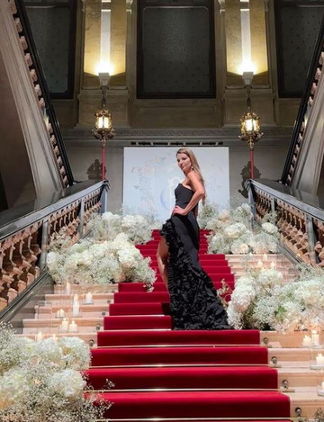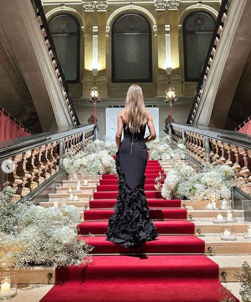 Η Ελίνα Θεοδότου παρευρέθηκε στον γάμο του αδελφού της και έκλεψε τις εντυπώσεις με ένα μαύρο, georgette φόρεμα το οποίο ξεχώριζε χάρη στην ιδιαίτερη ουρά του από ruffles και το σέξι σκίσιμο στο πλάι το οποίο τόνιζε τα καλλίγραμα πόδια της.