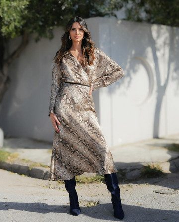 Μακρύ φόρεμα με print και ψηλές μπότες