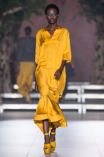 Τα υλικά που έχουν χρησιμοποιηθεί είτε είναι φυσικά, όπως μετάξι, βαμβάκι και βισκόζη είτε είναι τεχνητά όπως τεχνητό δέρμα φιδιού και κροκοδείλου, ακόμα και οι γυαλιστερές σχεδόν υγρές μουσελίνες δημιουργούν μια αίσθηση οικειότητας και γαλήνης.