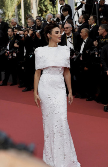 Η Ραμόνα Φίλιπ από την άλλη επέλεξε μια all-over sequinned, μάξι, λευκή δημιουργία με cape-effect που φέρει την υπογραφή της.
