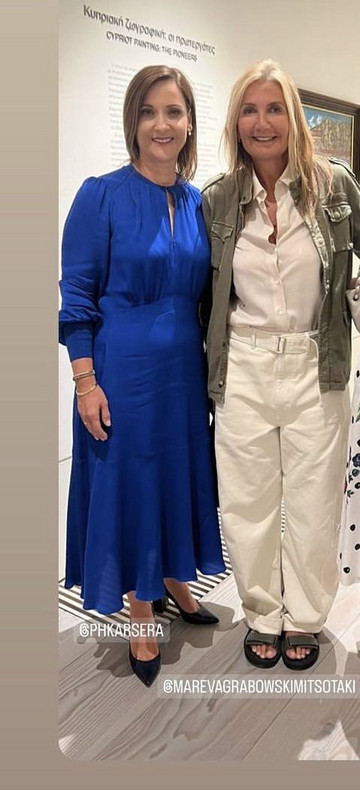 Θερμή υποδοχή επεφύλαξε, χθες η Πρώτη Κυρία της Κυπριακής Δημοκρατία, κα Φίλιππα Καρσερά Χριστοδουλίδη, στη σύζυγο του Έλληνα Πρωθυπουργού κα Μαρέβα Μητσοτάκη, η οποία συνόδευσε τον σύζυγό της στην Κύπρο, με αφορμή την Τριμερή Σύνοδο Κύπρου Ελλάδας Ισραήλ, στη Λευκωσία.