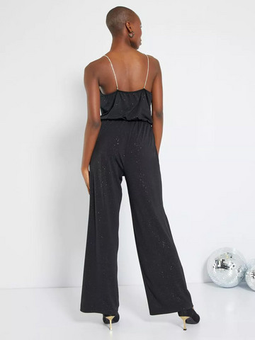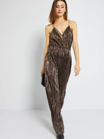Από τα χριστουγεννιάτικα ψώνια σου, δεν θα πρέπει να παραλείψεις το κομψό shimmery jumpsuit με τις λεπτομέρειες στρας. Αυτό το one-piece ρούχο σου χαρίζει λάμψη και φινέτσα χωρίς πολλή προσπάθεια και έρχεται στα 29 ευρώ μόνο. Με ένα εξίσου εντυπωσιακό μακιγιάζ και γόβες, πετυχαίνεις ένα ολοκληρωμένο γιορτινό look.