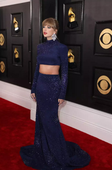 H Taylor Swift με Roberto Cavalli sequin σύνολο με crop top και maxi φούστα.