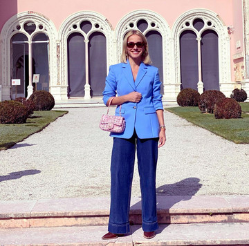 Η Έμιλυ, επέλεξε να φορέσει ένα wide-leg jeans με ένα jacket που θα πρωταγωνιστήσει αυτή την άνοιξη, το blazer jacket! Συνδύασε λοιπόν το jean της με ένα blazer jacket, σε μια γλυκιά παστελ γαλάζια απόχρωση, πετυχαίνοντας έτσι ένα ανοιξιάτικο denim look.