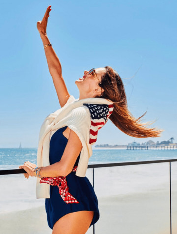 Η Alessandra Ambrosio φόρεσε ένα πλεκτό flag sweater από την HILFIGER COLLECTION.