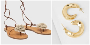 Αντί για πέδιλα μπορείς να επιλέξεις τα δερμάτινα σανδάλια Alohas Jakara, τα οποία ξεχωρίζουν χάρη στο 3D πλεκτό λουλούδι που διαθέτουν και για αξεσουάρ προτίμησε ένα πιο απλό ζευγάρι σκουλαρίκι όπως είναι οι κρίκοι από Answear Lab.
