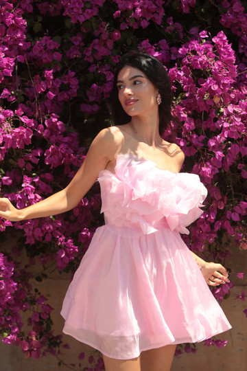 Η γνωστή influencer κατάφερε με ένα φόρεμα να δημιουργήσει ένα υπέροχο girly σύνολο με Barbiecore vibes. Συγκεκριμένα, πόνταρε σε ένα ροζ φόρεμα, σε μίνι μήκος, με frill λεπτομέρειες από τούλι που έδιναν μια έξτρα νότα στιλ στην εμφάνιση της.