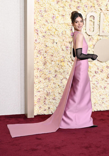 Η ηθοποιός περπάτησε στο κόκκινο χαλί με ένα υπέροχο ροζ φόρεμα του ιταλικού οίκου Prada και διάφανα μαύρα γάντια που έδωσαν “Breakfast at Tiffany’s” vibes στην εμφάνιση της.