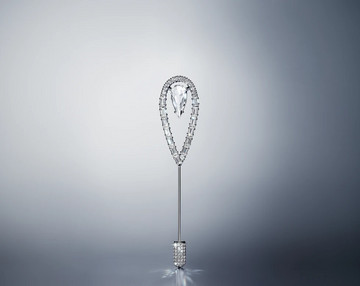 Η τιάρα και η καρφίτσα γραβάτας της Swarovski για τον Χορό της Όπερας της Βιέννης 2025 αποτίουν φόρο τιμής στο εμβληματικό λογότυπο του κύκνου του Οίκου. Τα prong-set baguette και στρογγυλής κοπής Swarovski Zirconia της τιάρας σχηματίζουν κομψές καμπύλες, θυμίζοντας φτερά ή έναν κύκνο που επιπλέει στο νερό. Οκτώ κρύσταλλοι σε σχήμα σταγόνας πλαισιώνουν μια αιωρούμενη κεντρική πέτρα, η οποία χορεύει με κάθε κίνηση, αιχμαλωτίζοντας το φως. Κάθε λαμπερή τιάρα είναι χειροποίητα διακοσμημένη με 233 ζιρκόνια και κρυστάλλους Swarovski και χρειάστηκε μία ημέρα για να δημιουργηθεί από τους έμπειρους τεχνίτες της Swarovski.