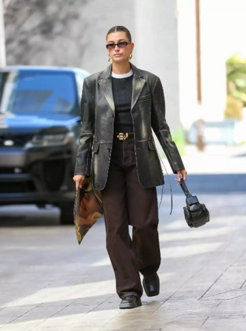 Η Sofia Richie δημιούργησε ένα total καφέ look με jean jacket και jeans σε απόχρωση του καφέ ενώ η Hailey Bieber συνδύασε το καφέ τζιν της με μαύρο top και δερμάτινο jacket.