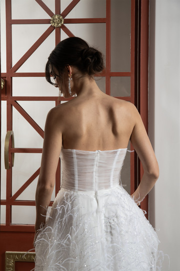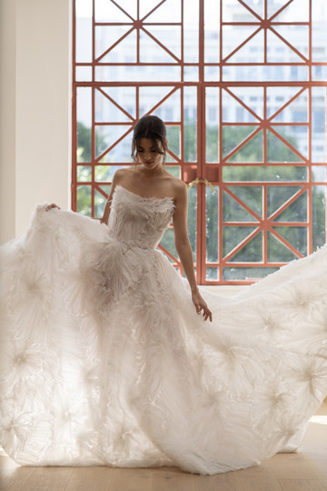 Ιδιαίτερα εντυπωσιακά μέσα στην απλότητα τους είναι τα νυφικά με cut outs στο σώμα, τα οποία δημιουργούν ένα μοντέρνο αποτέλεσμα. Τα φουσκωτά νυφικά φορέματα, μέσα από τη Bridal Collection 2024 της Έλενας Στρογγυλιώτου μεταμορφώνονται αναδύοντας έναν αριστοκρατικό αέρα θηλυκότητας και ρομαντισμού, ενώ οι περίτεχνες ραφές είναι ακόμη ένα χαρακτηριστικό στοιχείο της συλλογής δημιουργώντας ένα σύγχρονο αποτέλεσμα.