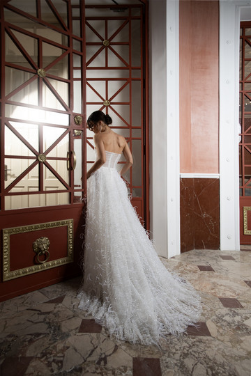 Μια άλλη τάση εξίσου ευέλικτη που κλέβει την παράσταση είναι οι στενές, κομψές δημιουργίες που αγκαλιάζουν το σώμα αρμονικά και στις οποίες προσαρμόζονται αποσπώμενες εντυπωσιακές φούστες με ουρά οι οποίες μπορούν να αφαιρεθούν. Έτσι η κάθε γυναίκα μπορεί να έχει δυο μοναδικές εμφανίσεις στο γάμο της, μία στην εκκλησία και μια στη δεξίωση.