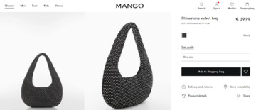 Τα καταστήματα Mango έχουν μία άκρως εντυπωσιακή και glam τσάντα στη νέα τους συλλογή, που θα σε βάλει αμέσως σε γιορτινό mood ενώ κοστίζει και κάτω από 50 ευρώ. Πρόκειται για μία rhinestone velvet τσάντα ώμου, με αρχικό κόστος το € 39.99. Με το Black Friday να πλησιάζει, μπορείς να βάλεις τη συγκεκριμένη τσάντα στην wish list σου και να δεις αν θα μπει σε έκπτωση.