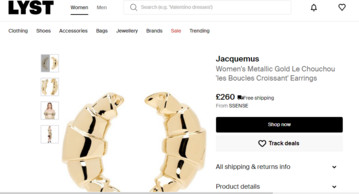 Ωστόσο, αυτό που μας τράβηξε την προσοχή ήταν τα σκουλαρίκια της που αναβάθμισαν το όλο look της. Τα χρυσά της σκουλαρίκια είχαν το σχήμα… κρουασάν και ανήκουν και αυτά στον οίκο Jacquemus. Τα «les Boucles Croissant» σκουλαρίκια της κοστίζουν σχεδόν 300 ευρώ και βρίσκονται προς πώληση στην ιστοσελίδα Lyst.