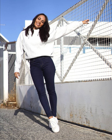 - H Χριστίνα Κυριάκου επέλεξε το Blue Ivy Skinny Jean από Marks and Spencer με λευκό sweater και λευκά sneaker ένα νεανικό look που προσφέρει άνεση όλες τις ώρες.