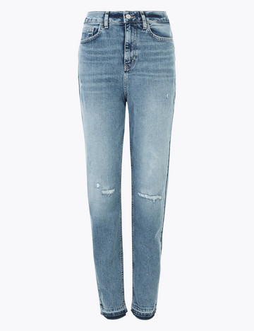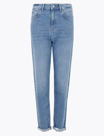 - H Χριστιάνα Αριστοτέλους επέλεξε το Marks and Spencer mom fit jean ,που προσδίδει άνεση αγκαλιάζοντας τους γοφούς αλλά και ύψος αφού φτάνει λίγο πιο πάνω από τον αστράγαλο. Φοριέται με πέδιλα με την ίδια ευκολία που φοριέται και αθλητικό, sneaker και flat.