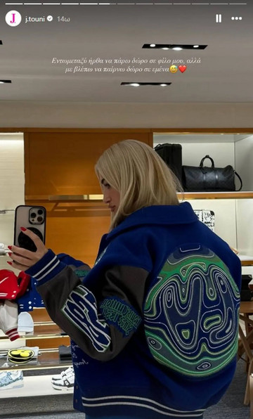Ένα oversized varsity jacket από την αντρική συλλογή του οίκου Louis Vuitton αγόρασε ως δώρο… στον εαυτό της! Ένα ρούχο που ξεχωρίζει για το στυλ και την εκκεντρικότητά του, αλλά και για την υψηλή τιμή του!